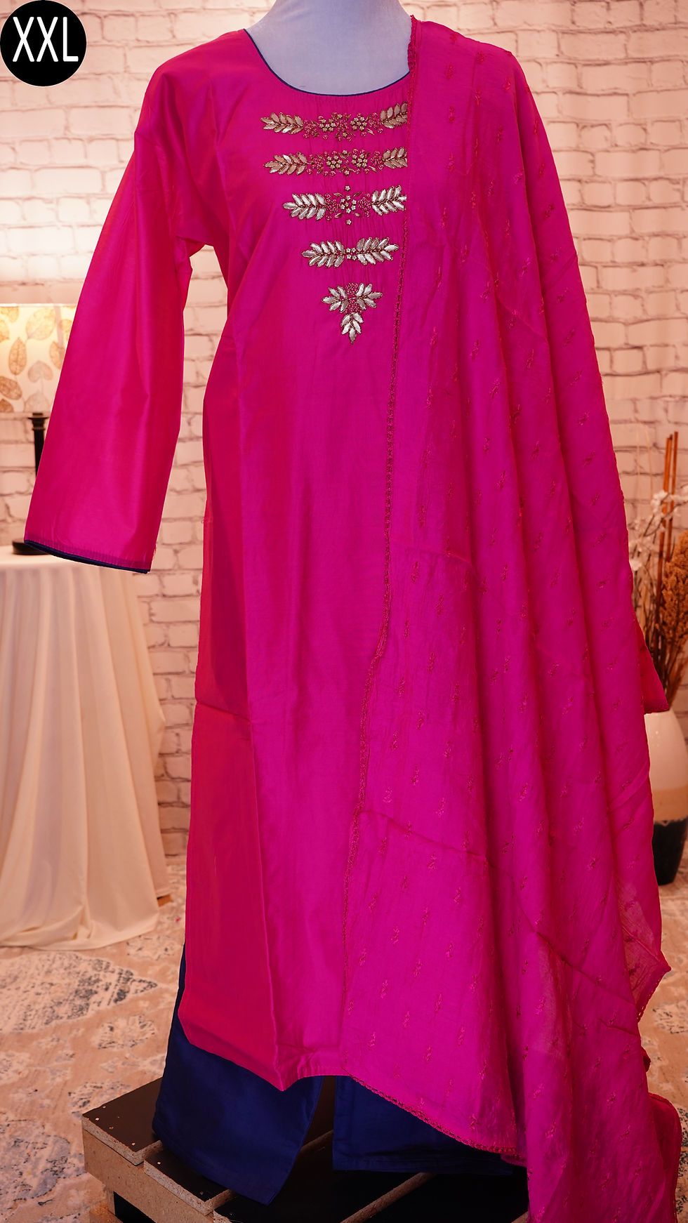 Mauve Pink Silk Kurta with Palazzo and Dupatta