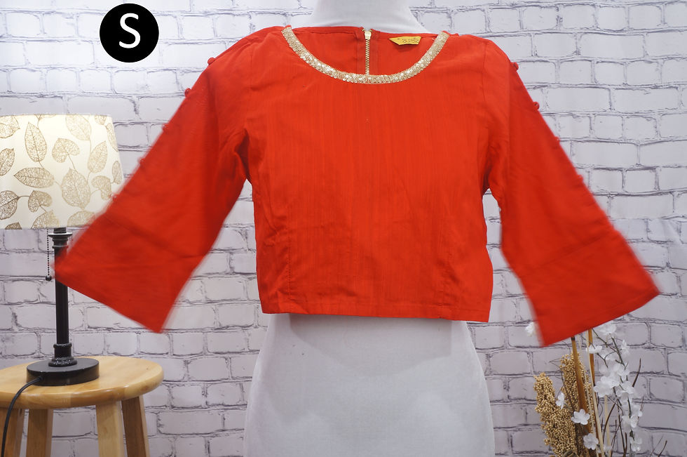 Red Solid Crop Top/ Blouse for Saree/Skirt